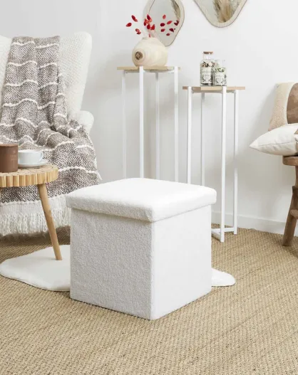 Coffre Pouf Pliable Bouclette blanc - 38x38x38 cm