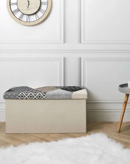 Coffre Banc Pliable Patchwork multicolore - 76x38x38 cm