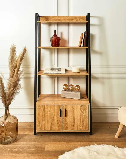 Buffet Bibliothèque Bois et Métal marron/noir - 75x40x160 cm