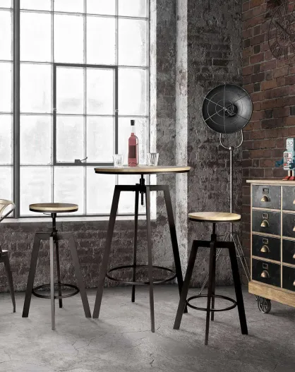 Table Mange debout + 2 Tabourets Reglables Aria bois/beige/blanc - 64x64x93 cm