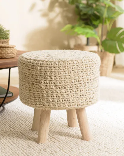 Tabouret rond en Laine tressée Sacha ivoire - D.40x42 cm