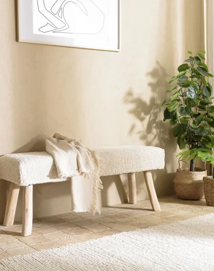 Banc en Laine texturée Sacha ivoire - 123x41x50 cm