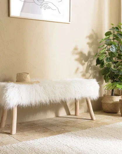 Banc en Fausse Fourrure Sacha ivoire - 123x41x50 cm