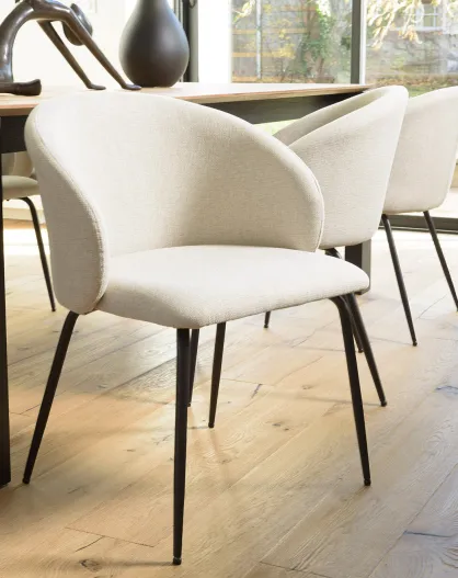 2 Chaises en Tissu Tom dossier arrondi écrues - 59x59x78 cm