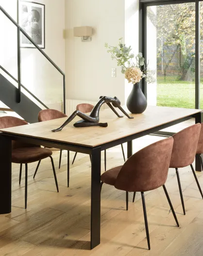 2 Chaises en Velours Tom dossier arrondi acajou - 50x55x79 cm