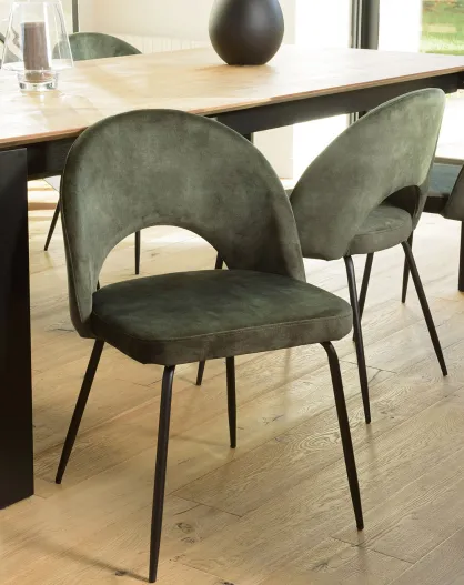 2 Chaises en Velours Tom dossier ouvert vert sapin - 51x55x79 cm