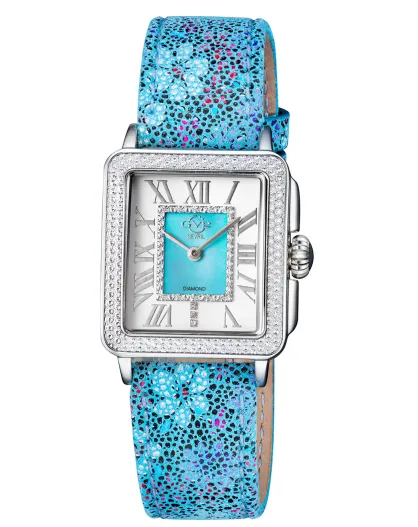 Montre Padova Floral Femme Quartz en Cuir & Diamants 0.015 ct bleu fleuri