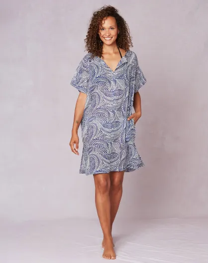 Kaftan 100% Voile de Coton Palmsprings bleu