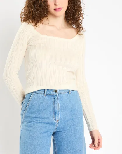 Pull en Laine & Cachemire Sacha col danseuse écru