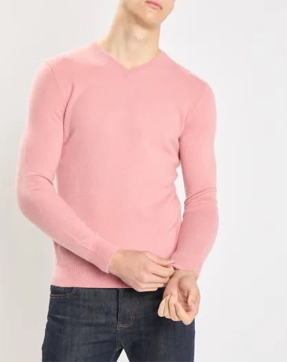 Pull 100% Cachemire Nachve col V rose