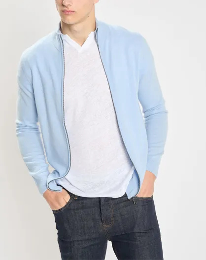 Gilet zippé 100% Cachemire Nachgil bleu clair