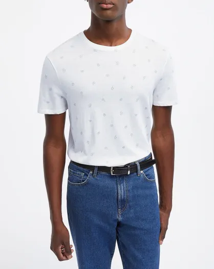 T-Shirt en Coton Bio Fishpri mc micro print écru