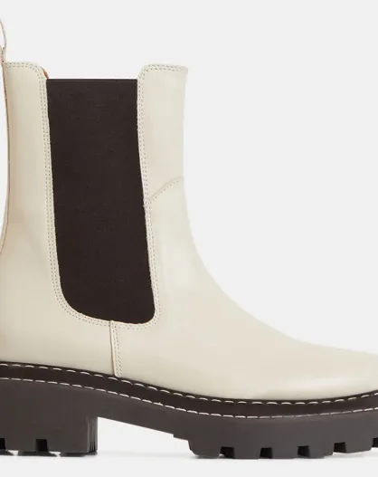 Chelsea Boots en Cuir lisse surpiqures blanches - Talon 4 cm