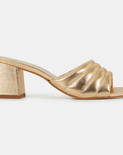 Mules à talon en Cuir matelassées dorées - Talon 6 cm