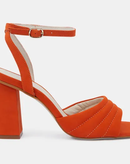 Sandales à talon en Cuir matelassées orange - Talon 8 cm