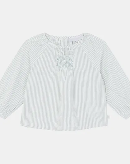 Top en Coton Bio Alaise bis ml rayures écru/vert
