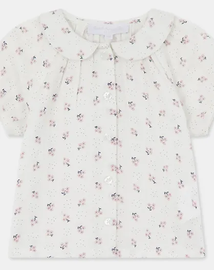 Top en Coton Bio Alouest bis mc gaze aop écru/rose