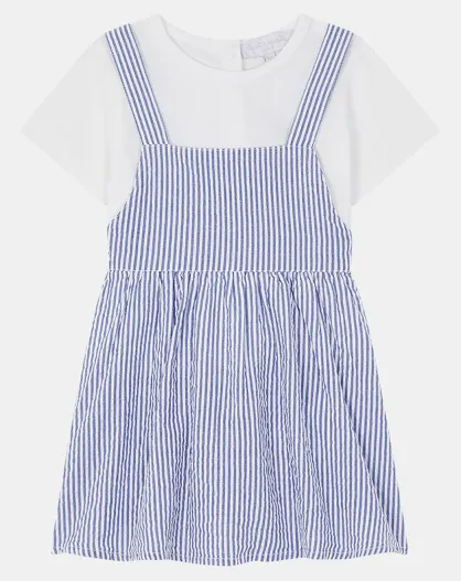 Ensemble en Coton Bio Amarla robe rayée bleu/ecru