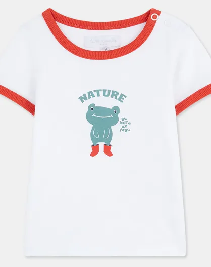 T-Shirt en Coton Bio Arino mc print écru/rouge