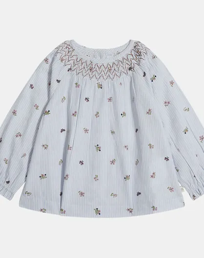 Blouse Aline bis smock rayure bleu/multicolore