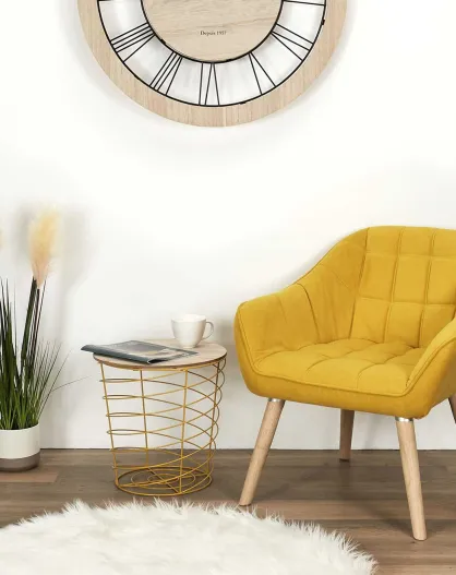 Table filaire Cyclone jaune moutarde/bois - 40x40.5x40 cm