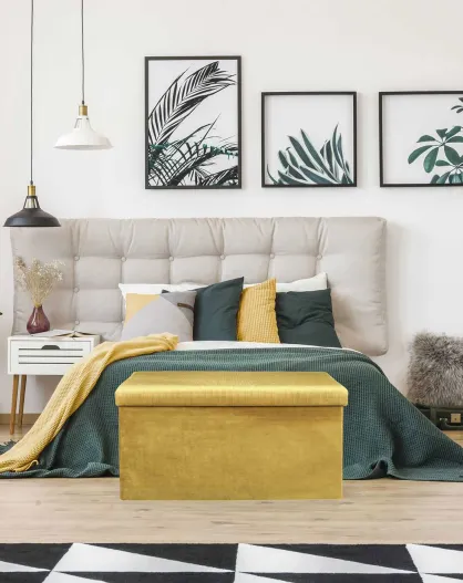 Coffre banc velours cotelé pliable Giulia moutarde - 77x38x38 cm