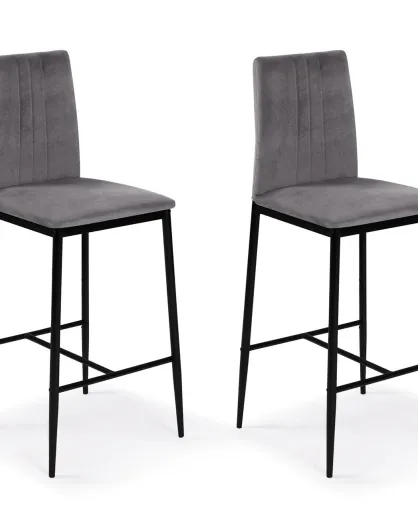 2 Tabourets de bar en Velours glam Jade gris foncé - 43x46.5x100 cm
