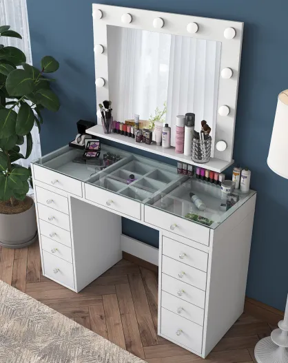 Coiffeuse Tonya blanche - 120x79.8x44.5 cm