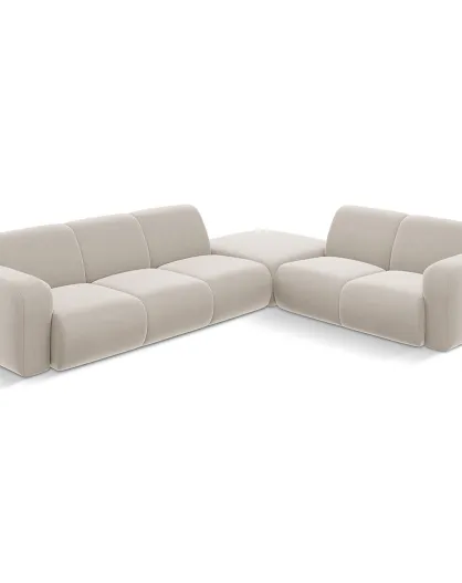 Canapé d'Angle droit en Velours Lola 6 places beige clair - 315x250x72 cm