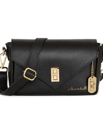 Sac bandoulière en Cuir Terina noir - 24x16x6.5 cm