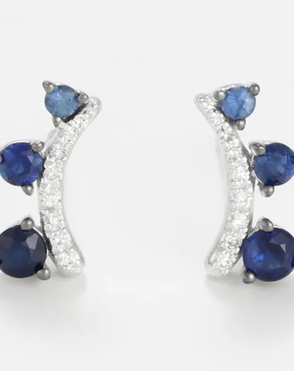 Boucles d'oreilles Soulia Diamants 0.03 ct & Saphirs 0.27 ct or blanc