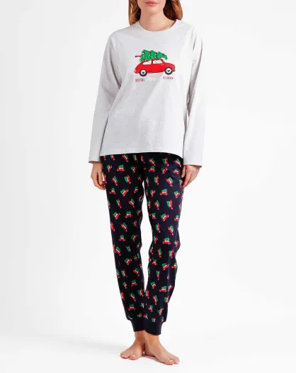 Pyjama Haut à manches longues & Pantalon Leila gris/bleu marine