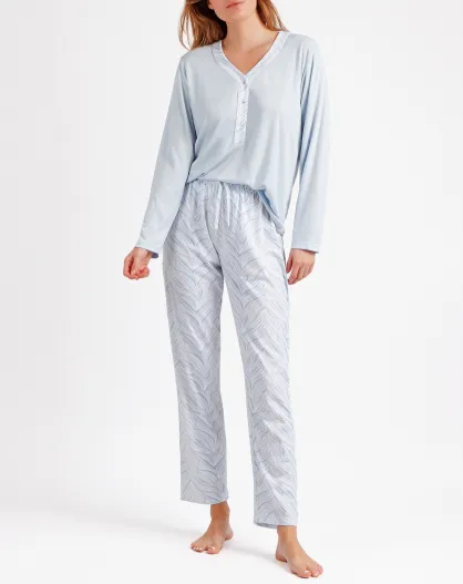 Pyjama Haut à manches longues & Pantalon Aria bleu ciel