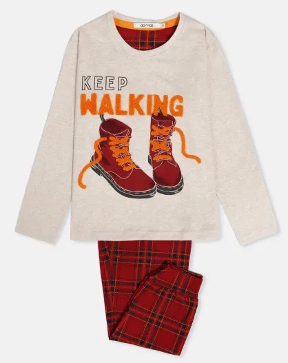 Pyjama Haut manches longues & Pantalon Yara beige/rouge