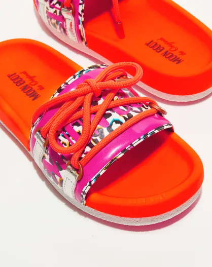 Mules Deimos argenté/orange fluo