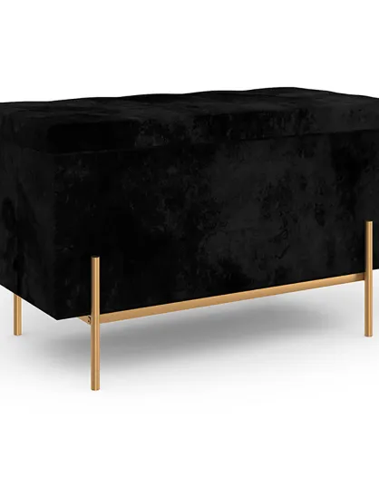 Banc coffre avec pieds dorés Loan en velours noir/doré - 76x37x45 m