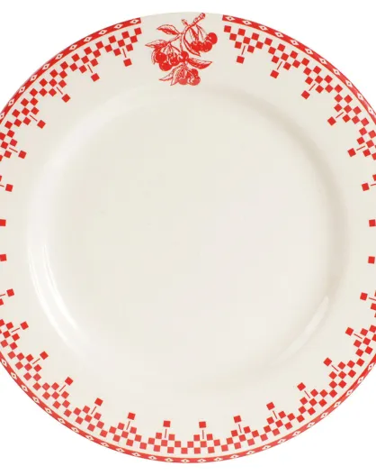 6 Assiettes plates Damier rouges - D.27 cm