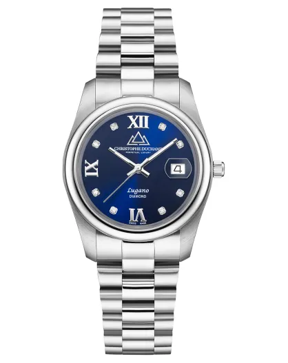 Montre Femme Quartz en Acier Lugano Diamant 0.36 ct argenté/bleu