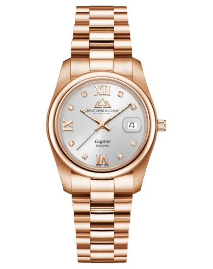 Montre Femme Quartz en Acier Lugano Diamant 0.36 ct doré rose