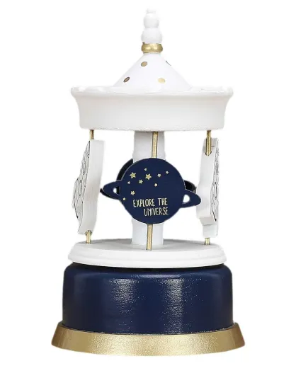 Carrousel Musical blanc/bleu- 11.5x11.5x20.3 cm