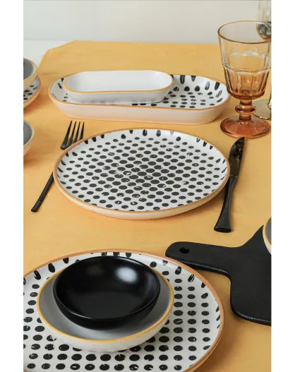 Service de table en céramique noir/rouge/blanc- 18 pièces