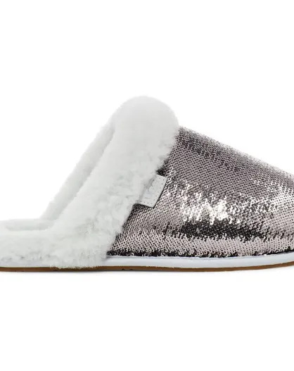 Chaussons fourrés Laine Scuffette Mirror Ball argentés