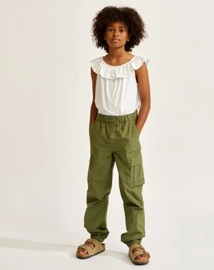 Pantalon ajusté court en Coton bio Jorgina kaki