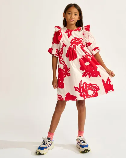 Robe en Popeline Posa à fleurs rouge