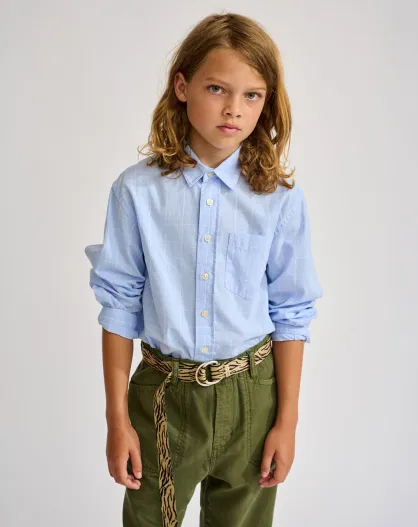 Chemise en Coton & Lin Gulian à carreaux bleue