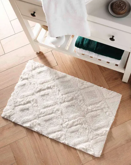 Tapis de bain coton tufte Thais blanc - 50x80 cm