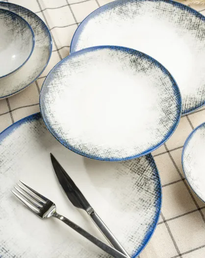 Service de table en Porcelaine écru/bleu - 24 pièces