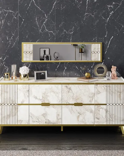 Buffet Kiev noyer/marbre blanc - 160x78x35 cm