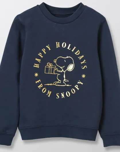Sweat 100% Coton Bio Cyrillus x Peanuts Snoopy bleu foncé