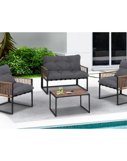 Salon de jardin Ozéa 4 places en métal et cordage gris anthracite/rotin